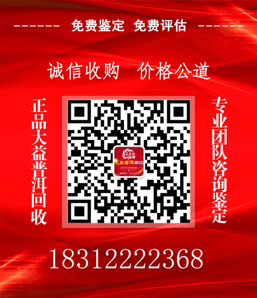 益茶號专业专注大益普洱中老期茶回收已有十多年之久,拥有专业的评估、鉴定能力以及诚信经营之本。本公司24小时在线为客人提供免费咨询、鉴定、评估的服务,提供另客人满意的报价,如有大量的大益普洱,本店可派人上门验货回收。益茶號在广州设有实体店,本着以顾客至上、诚信经营、童叟无欺、互利互惠的经营理念。如您有大益普洱茶的资源,请联系我们,益茶號将为您提供免费鉴定、评估的服务,以及提供高于其他同行的报价。